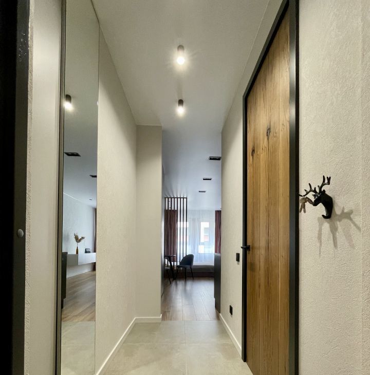 Прихожая 3.11 м2. со встроенным распашным шкафом с зеркалом во весь рост.