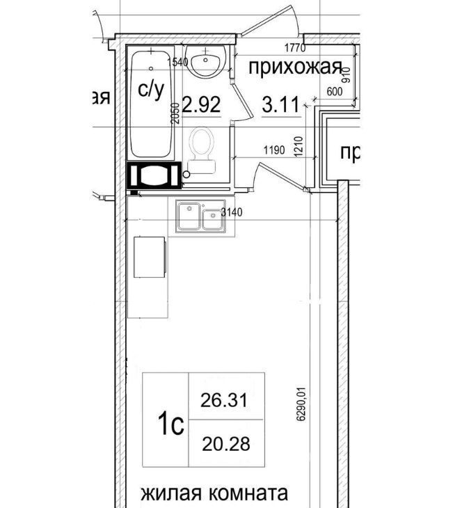 Студия Санкт-Петербург Планерная ул., 87к1 (26.31 м²)