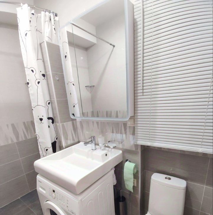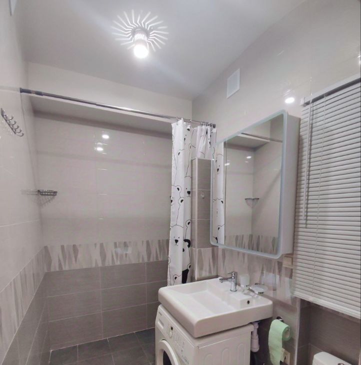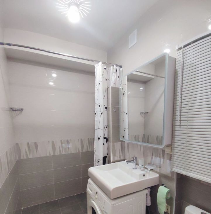 В квартире сделан качественный евроремонт. Пространство студии обустроено мебелью: есть все необходимое как на кухне, так и в жилой зоне. Установлены холодильник и стиральная маина, что делает быт комфортным. В санузле душевая кабина.