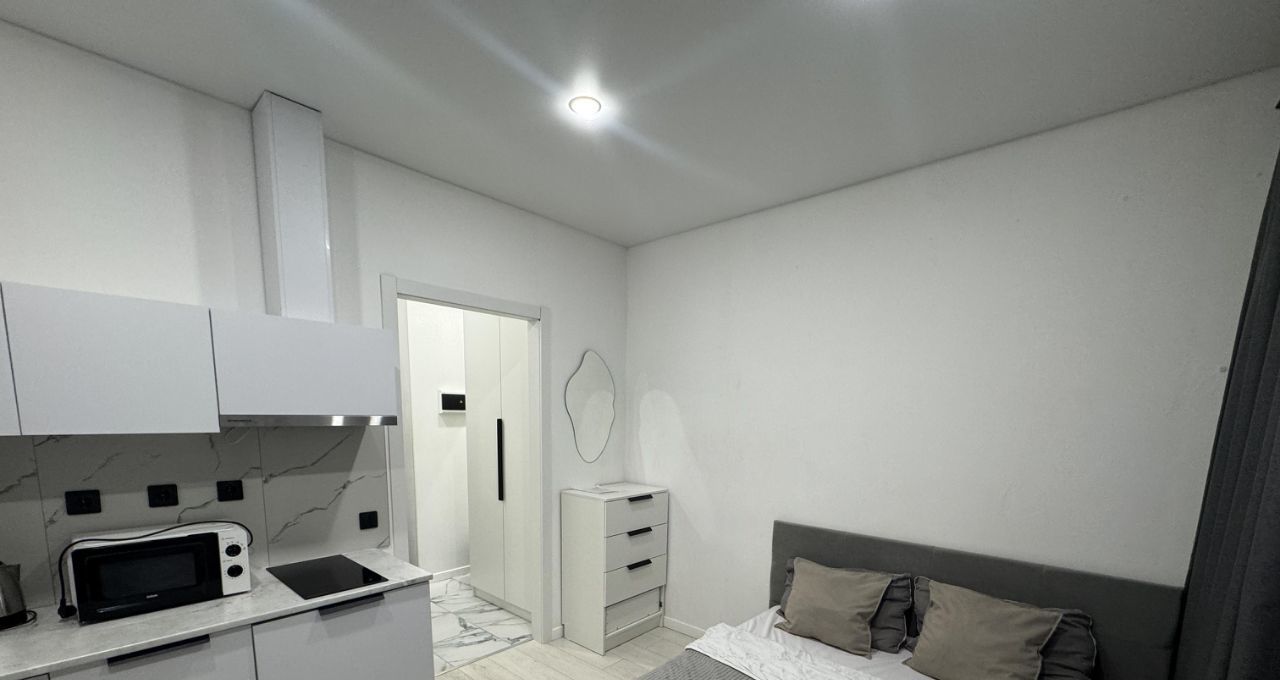 Предлагаем с 28 января вашему вниманию уютную студию в современном жилом комплексе, расположенную на 8-м этаже 13-этажного монолитного дома, построенного в 2022 году. Общая площадь квартиры составляет 19.5 кв. м, что позволяет компактно разместить все необходимое для комфортной жизни. Высота потолков — 2.75 метра, окна выходят как на улицу, так и во двор, что обеспечивает естественное освещение в течение всего дня.