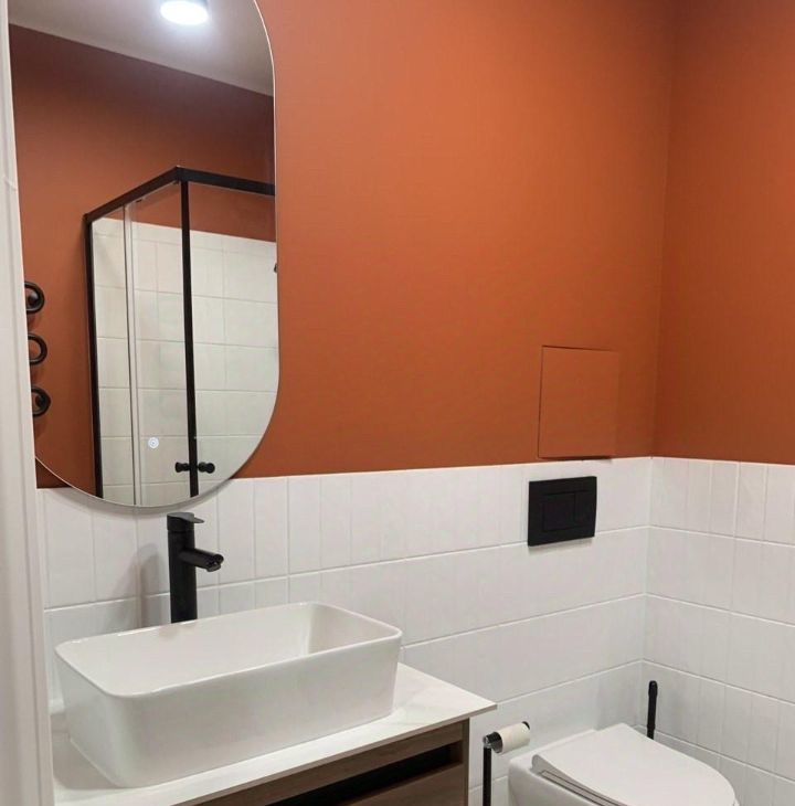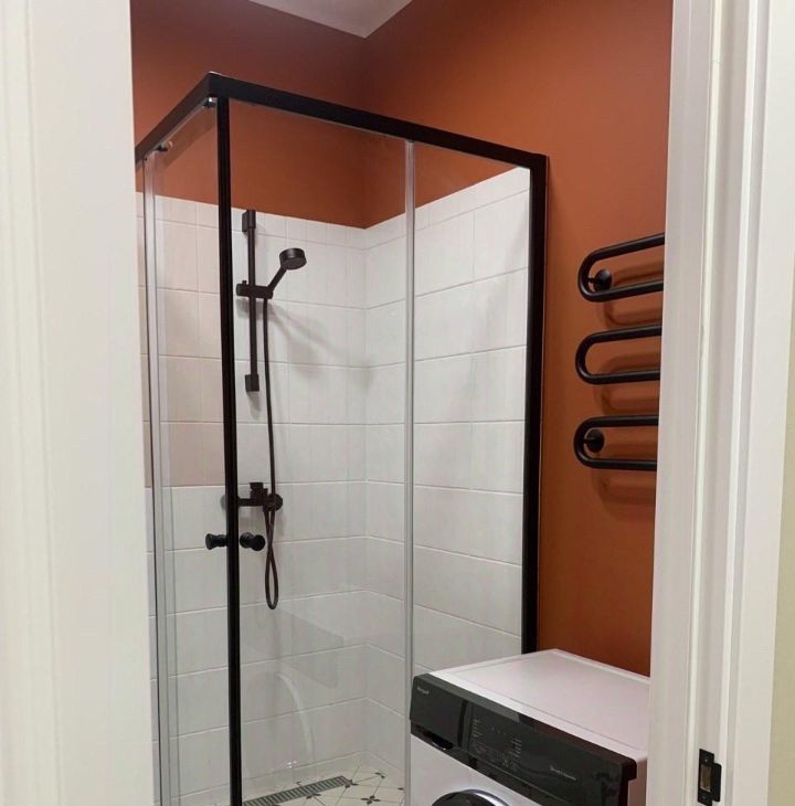 Санузел совмещенный, выполнен в современном стиле с качественной сантехникой и стиральной машиной. В квартире предусмотрен балкон с панорамным видом на город.