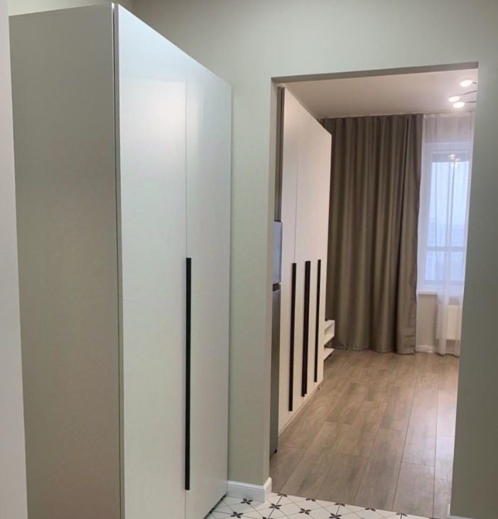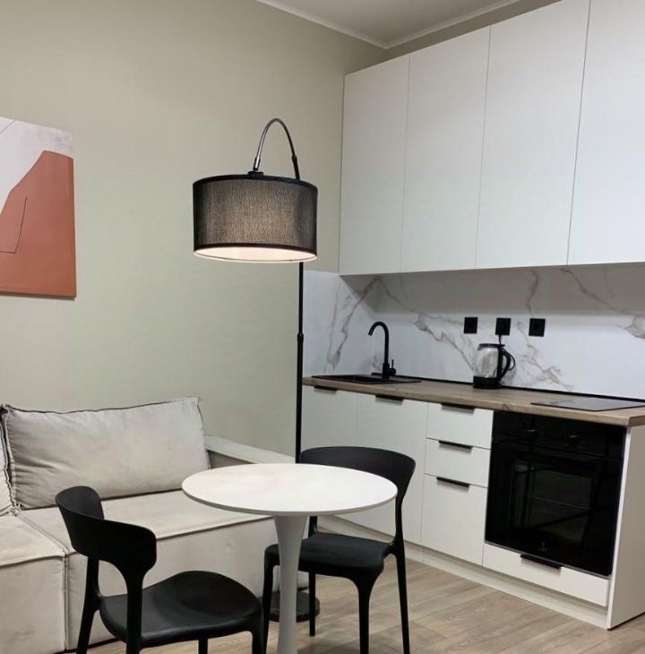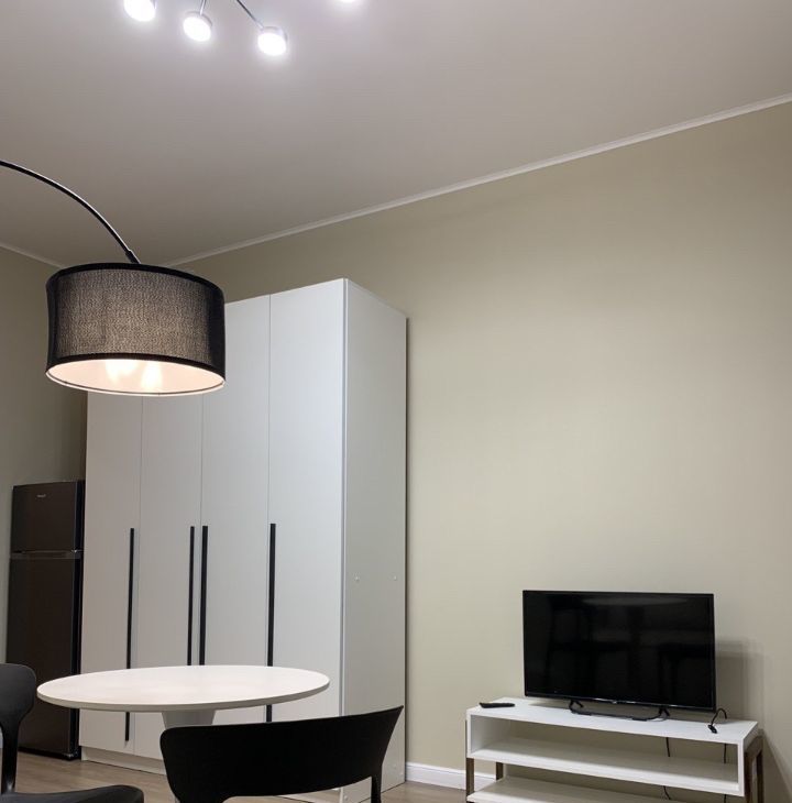 Сдается стильная студия с новым ремонтом в ЖК Тайм Сквер . В квартире есть все необходимое для проживания и сдаётся в первые . Просторная кухня оборудована необходимой посудой и техникой, включая холодильник и плиту. В комнате установлен телевизор и удобный диван. Из мебели также имеются вместительные шкафы.