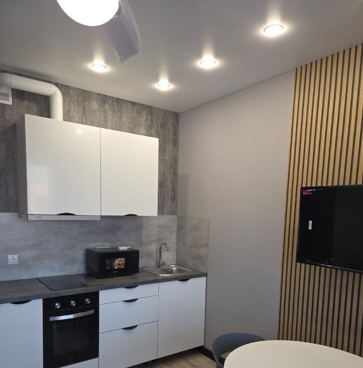 В квартире выполнен свежий ремонт, есть вся необходимая мебель как в комнате, так и на кухне. Для вашего удобства предусмотрена современная техника: холодильник, стиральная машина и телевизор. Ванная комната оборудована комфортной ванной.