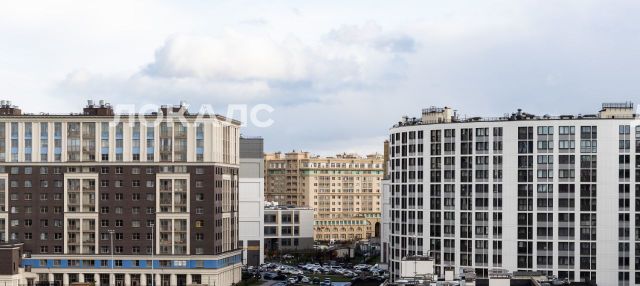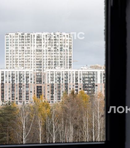 Квартира расположена на 9-м из 13-ти этажей. Вид из окон открывается на территорию детского сада (фото 26) . Корпуса соседних ЖК - на отдалении, обеспечивая приватность проживания.