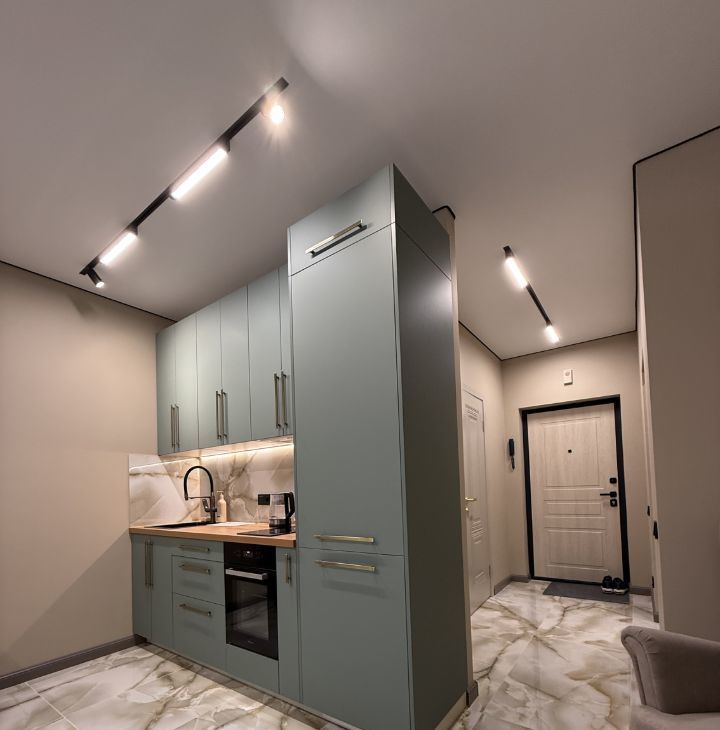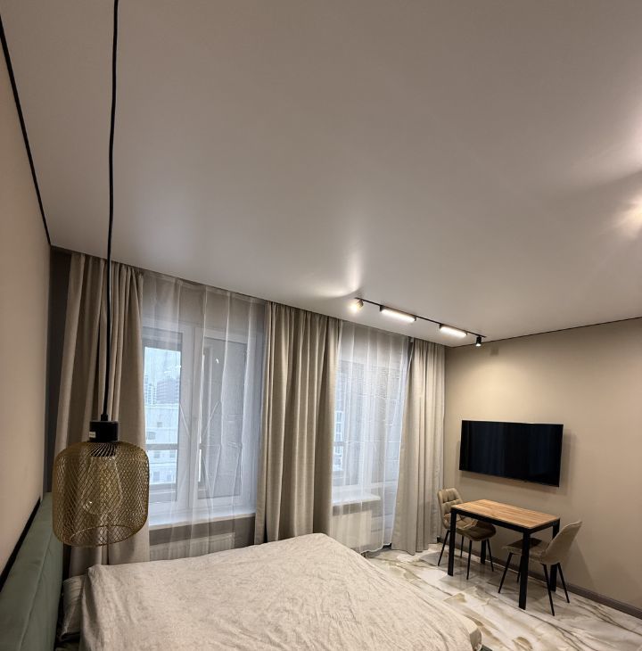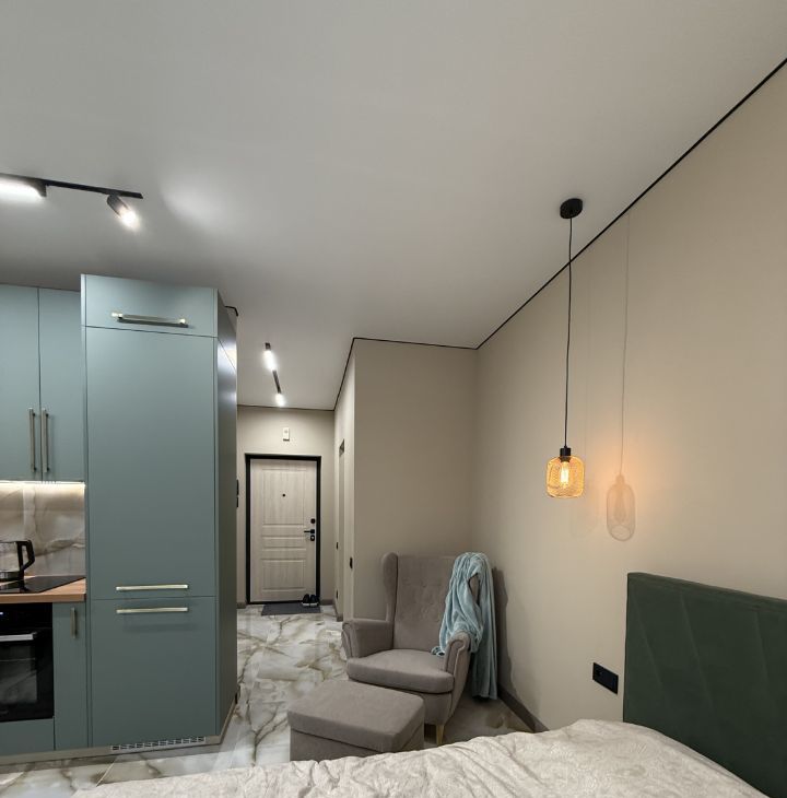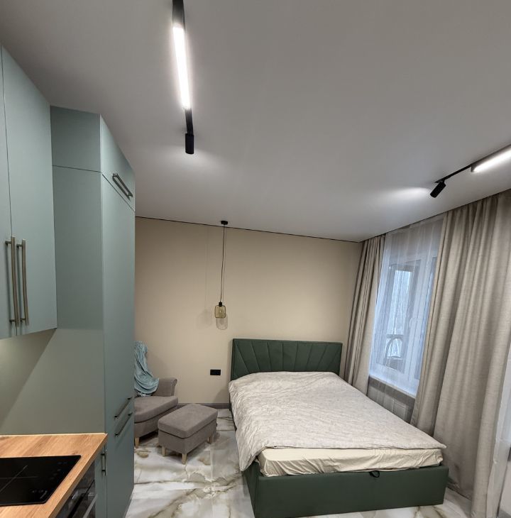 Впервые сдается просторная квартира студия с дизайнерским ремонтом , с использованием европейских стройматериалов премиум класса.