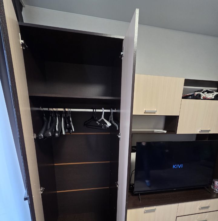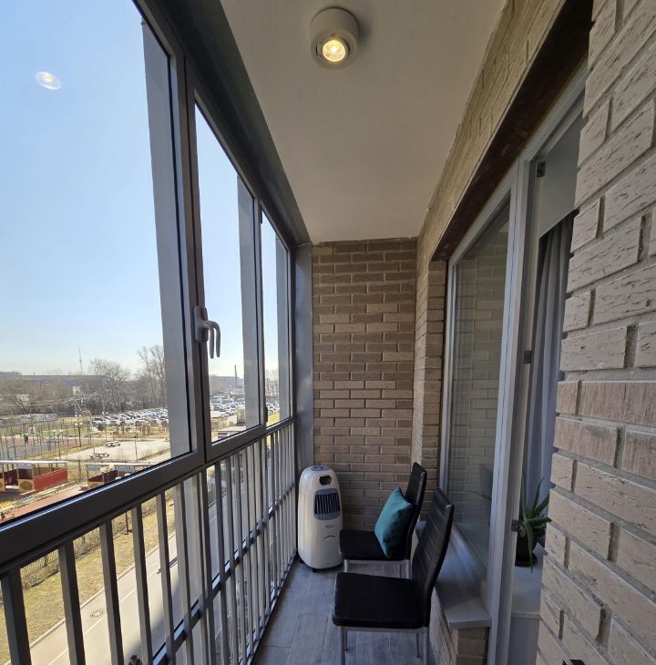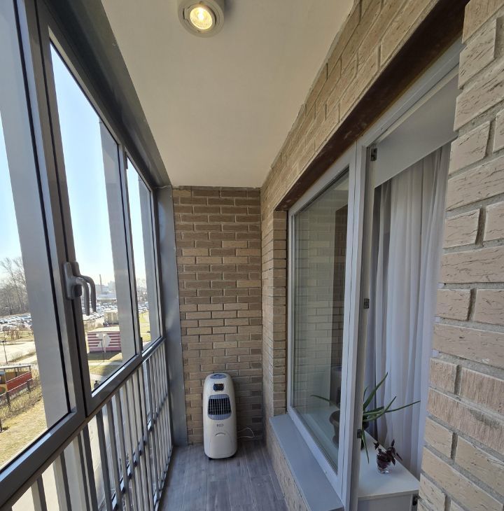 Большая застекленная лоджия со светильником. Сделан хороший евроремонт. Делали для себя. Удобная планировка, современная техника и мебель : стиральная машина, робот-пылесос, СВЧ- печь, кондиционер напольный, электроплита с духовкой, холодильник, большой телевизор, места для хранения одежды, большой, мягкий, легко раскладывающийся диван с ящиком для хранения.