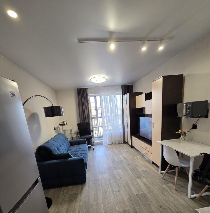 Сдается ВПЕРВЫЕ ПОСЛЕ ЕВРОРЕМОНТА уютная квартира-студия в новом доме комфорт-класса ЖК Богатырь 3на длительный срок рядом с тремя метро : Пионерская, Комендантский пр. и Старая Деревня ( около 20- 25 минут пешком).