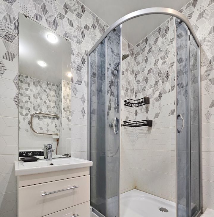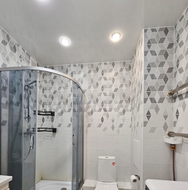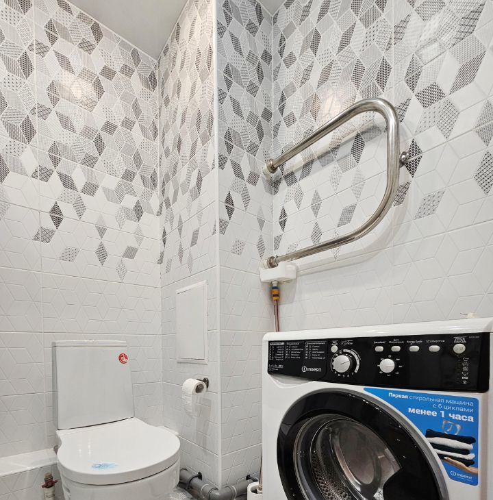 Санузел совмещенный. Душевая кабина, стиральная машина.