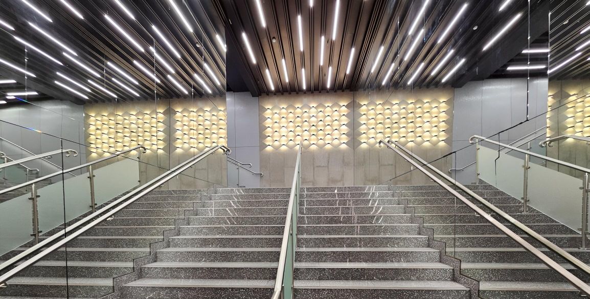 Комплекс удачно расположен в пешей доступности от метро. Удобный выезд в сторону центра города, на КАД.