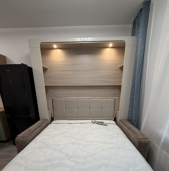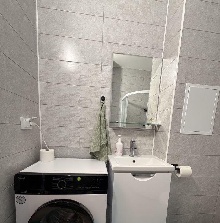 Студия с евроремонтом, обставлена мебелью и оснащена всей необходимой техникой. В вашем распоряжении холодильник и стиральная машина. Санузел совмещённый, оборудован современной душевой кабиной. Просторная лоджия станет отличным местом для отдыха.