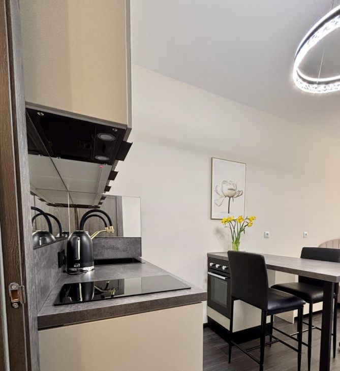 В кухне - холодильник, посудомойка, духовой шкаф, варочная панель, вытяжка, чайник, подсветка в зоне готовки. На кухне установлены питьевые фильтры на воду - у вас будет чистая питьевая вода - нет необходимости покупать бутилированную воду.