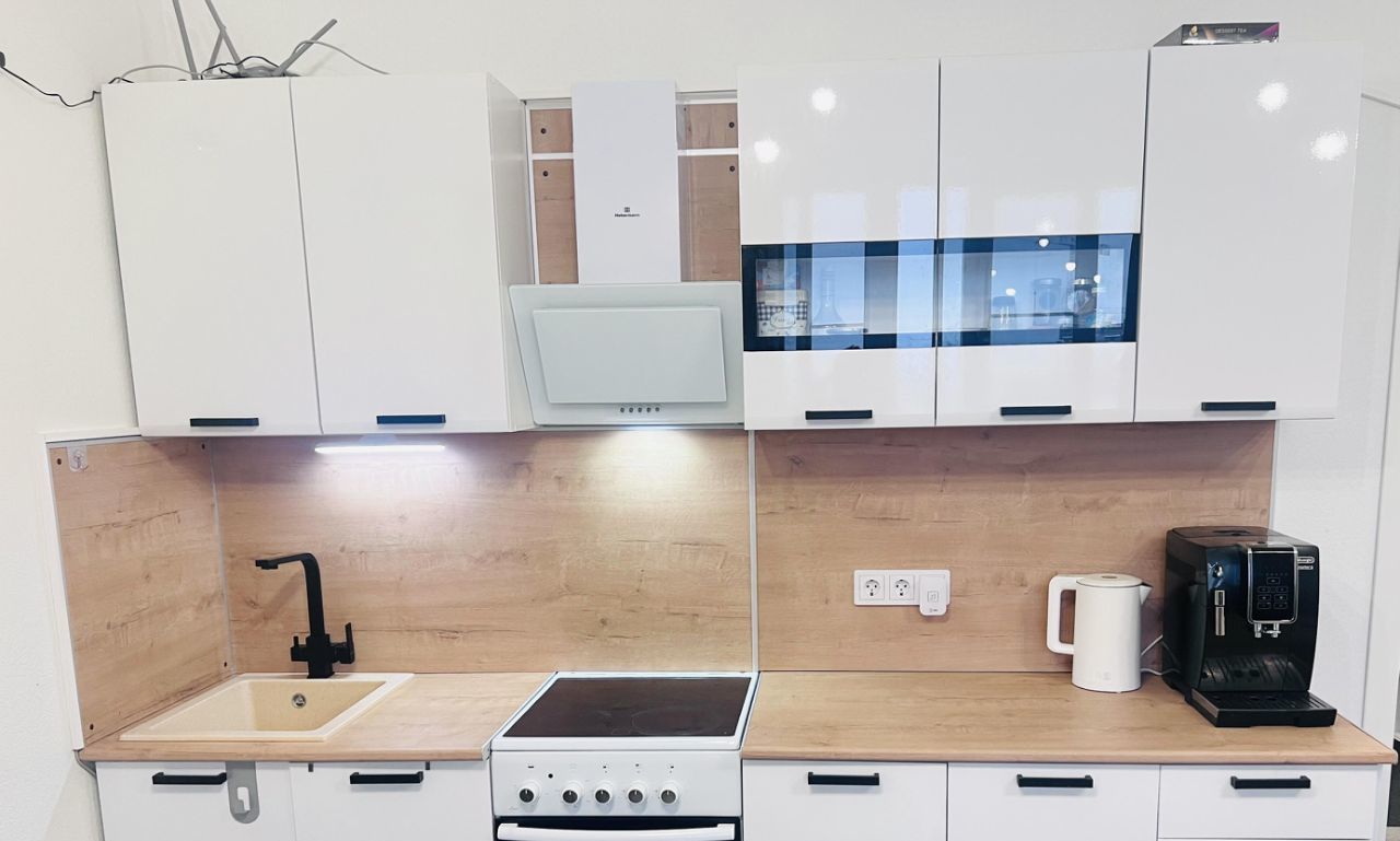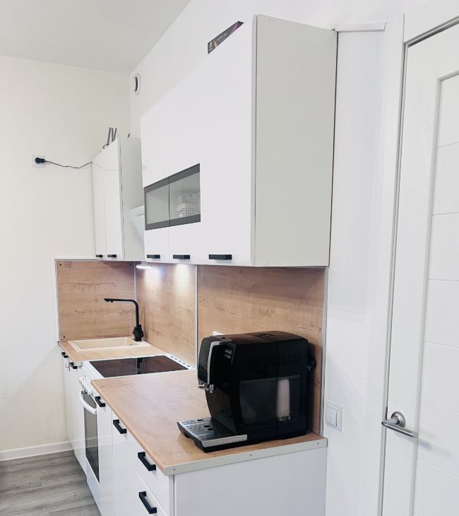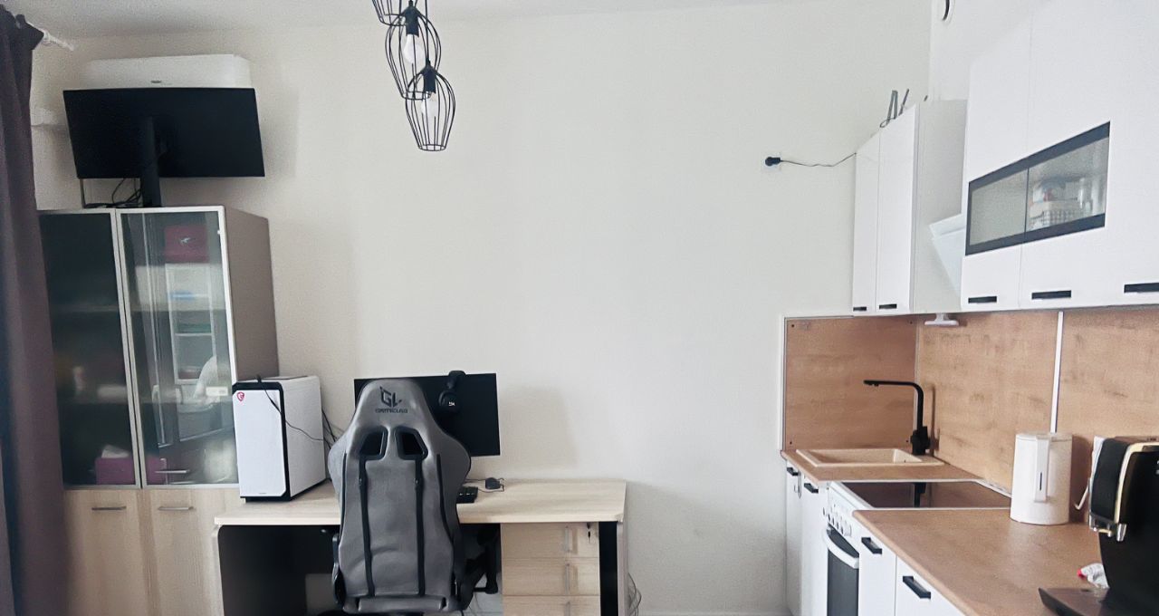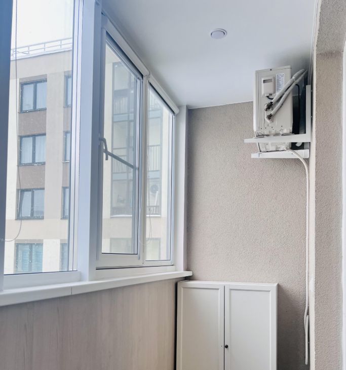 Просторная квартира-студия, общая площадь 30.4 кв.м. оборудованная всем необходимым в кухонной зоне, установлен кондиционер с выводом конденсата в канализацию, кровать 160*200 с подьемным механизмом. Коридор оборудован встроенным шкафом. Балкон утеплен, заменены стеклопакеты Рехау, жалюзи блэкаут.