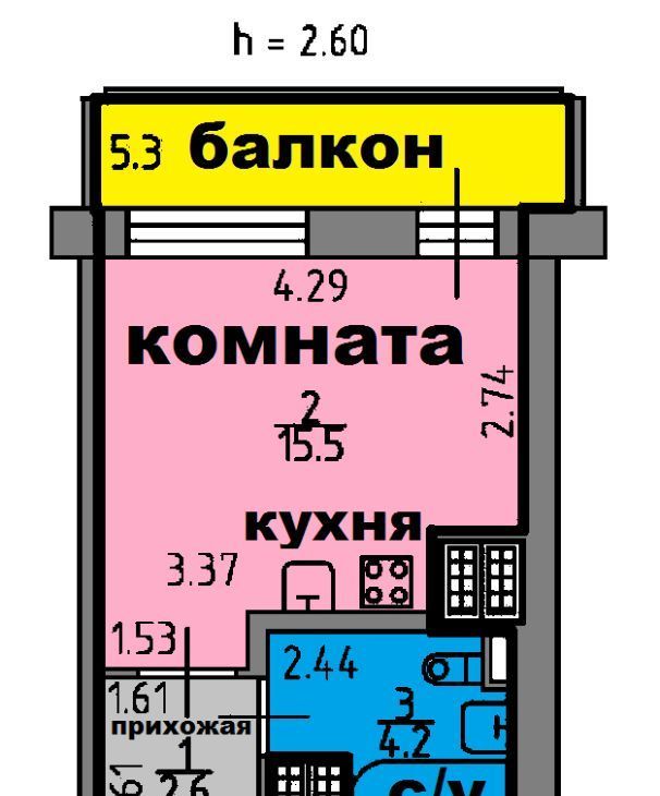 Студия Санкт-Петербург пос. Парголово, проезд Толубеевский, 8к2 (26.0 м²)