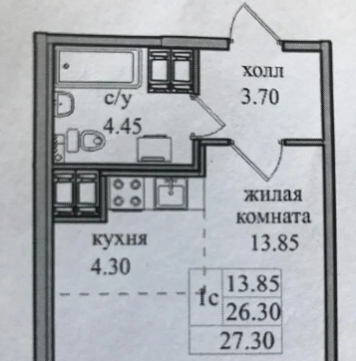 Студия Санкт-Петербург пос. Парголово, проезд Толубеевский, 20к1с1 (27.3 м²)