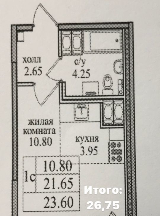Студия Санкт-Петербург пос. Парголово, проезд Толубеевский, 24 (27.0 м²)