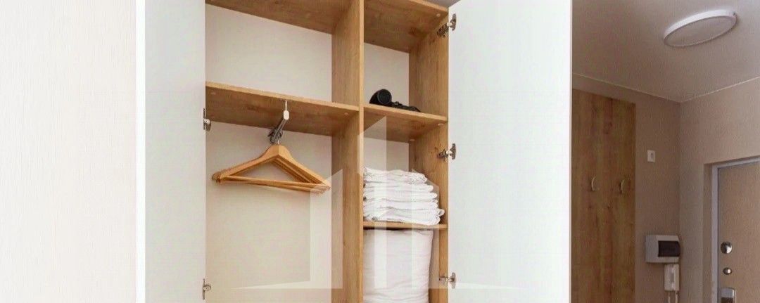 Места для хранения представлены вместительным шкафом в комплекте с плечиками.