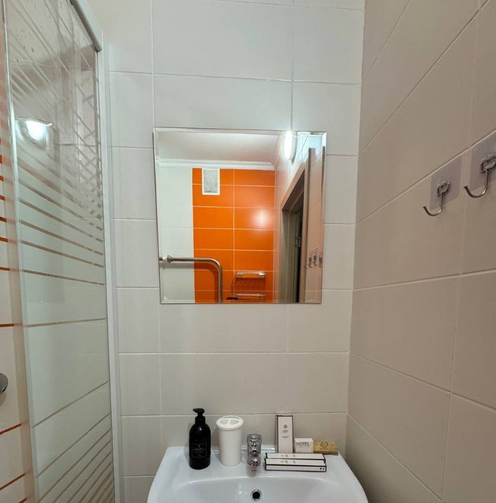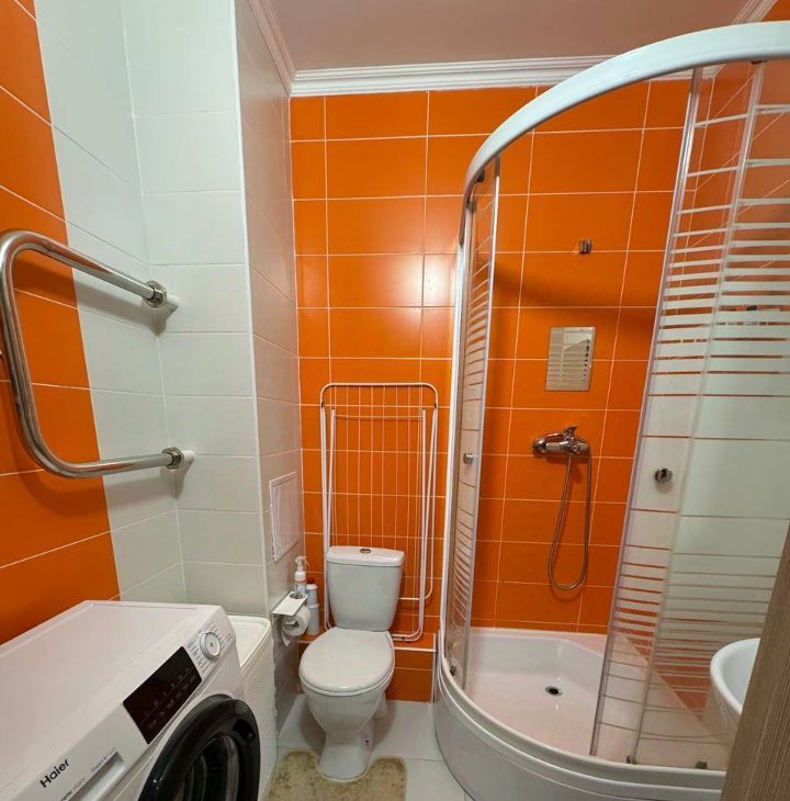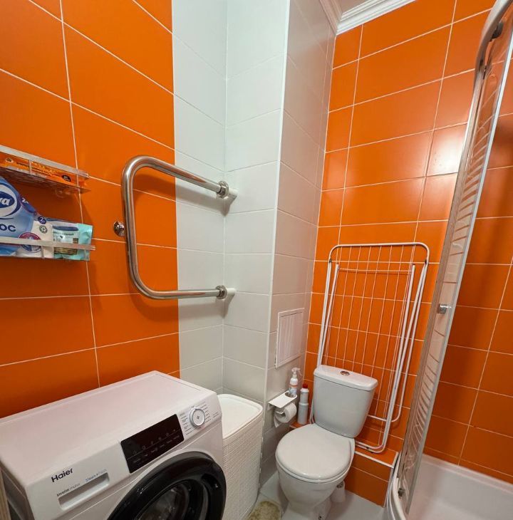 Санузел совмещенный, душ, стиральная машина. Вместительная вешалка.