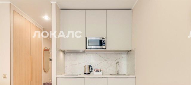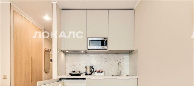 - Встроенный холодильник, чайник, пылесос, индукционная плита, вытяжка, подсветка кухни, кофеварка и чайник.