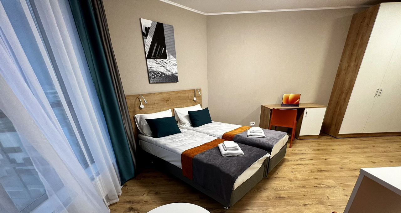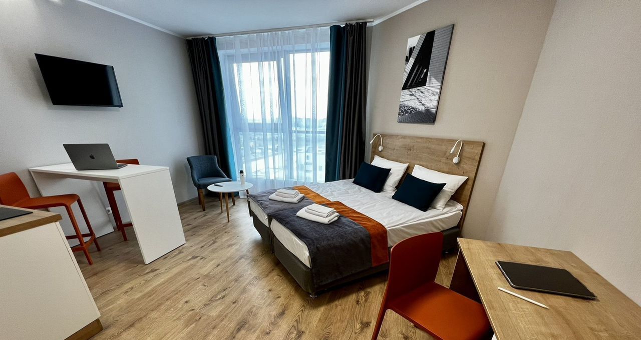 Редкая, просторная студия. Магазины и рестораны в 5 минутной доступности, до метро 15 минут, на первом этаже кофейни с свежей выпечкой. Есть все для комфортного проживания, мебель с доводчиками, хорошая техника.