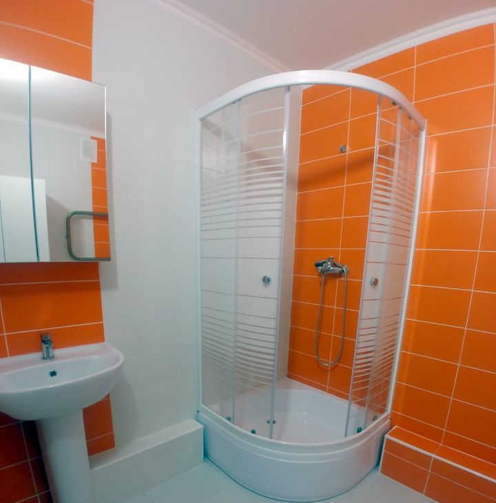 - в зоне ванны: шкаф зеркальный, шкаф для принадлежностей, душевая кабина, стиральная машина