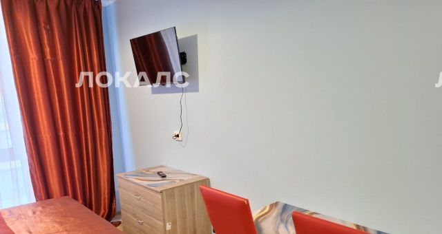 В квартире сделан качественный евроремонт. Просторная жилая зона площадью 18 кв. м объединена с кухней в 8 кв. м, что создаёт атмосферу открытого пространства. В наличии вся необходимая техника: холодильник, телевизор и стиральная машина. Кухня и комната обставлены мебелью. Совмещённый санузел оснащён современной душевой кабиной.