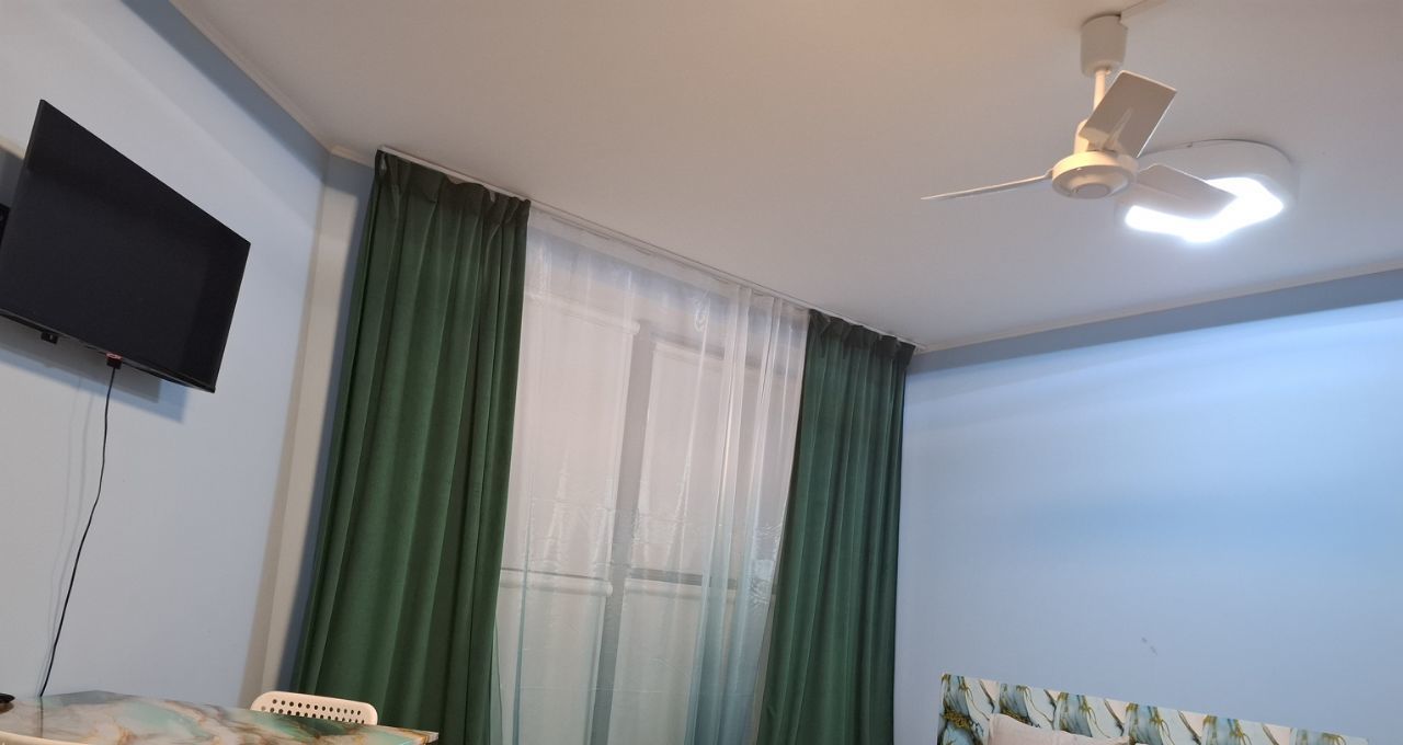 В апартаментах выполнен качественный дизайнерский ремонт. Кухня площадью 8 кв. м полностью оборудована мебелью и всей необходимой техникой: холодильник, телевизор и стиральная машина. Ванная комната оснащена ванной, что позволяет расслабиться после насыщенного дня. Студия меблирована, поэтому можно сразу заселяться без лишних хлопот.