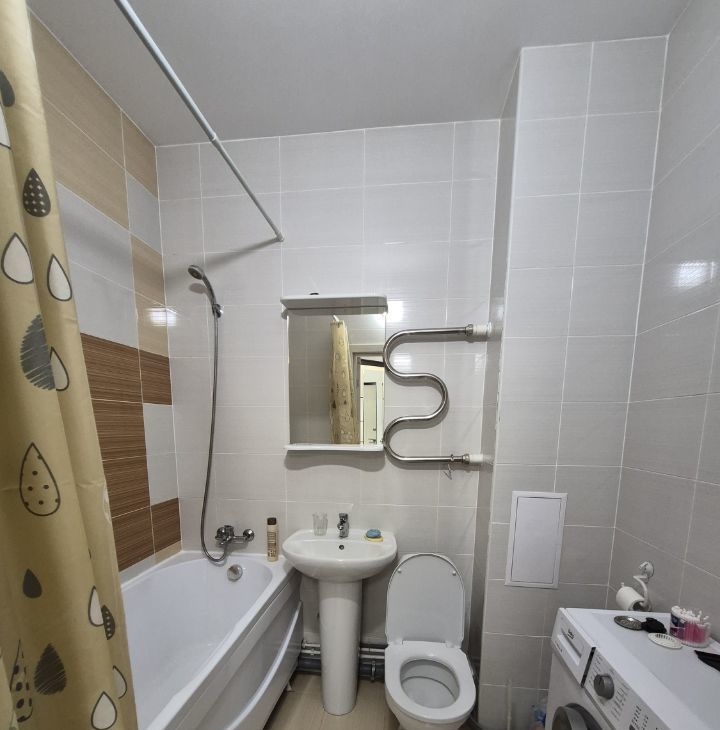 В квартире выполнен евроремонт. Просторная студия оборудована всей необходимой мебелью и техникой: холодильник, телевизор и стиральная машина. Комната обставлена мебелью, кухня также полностью укомплектована. Совмещенный санузел с ванной. Из окон открывается вид на улицу, а лоджия станет отличным местом для отдыха.