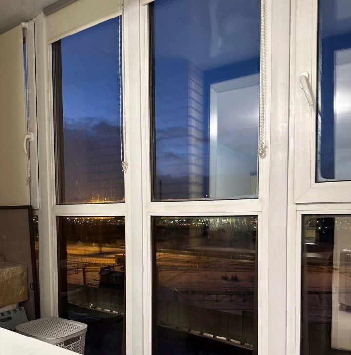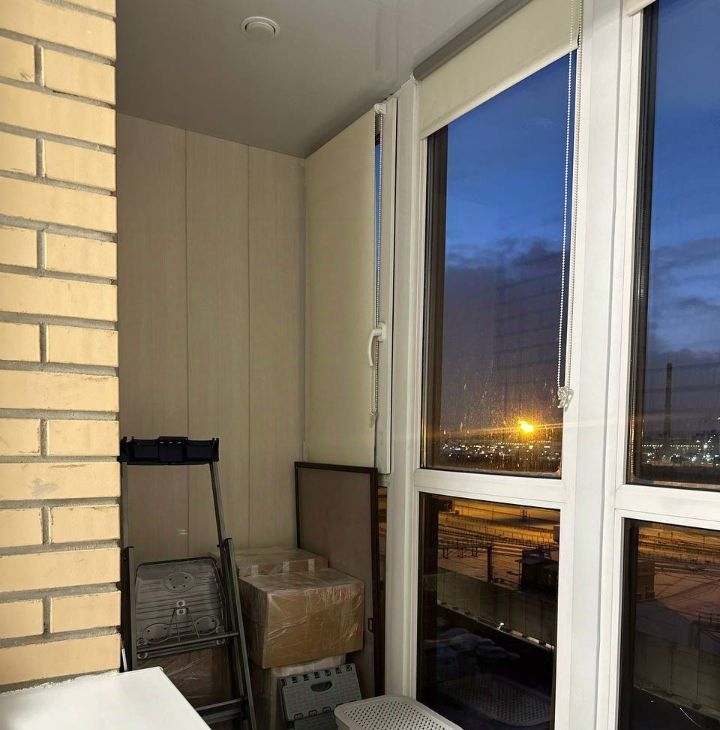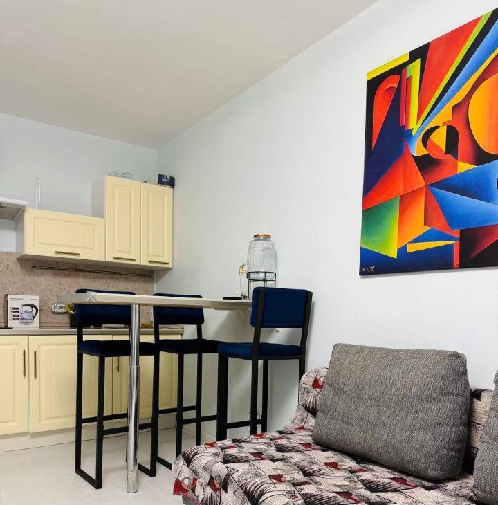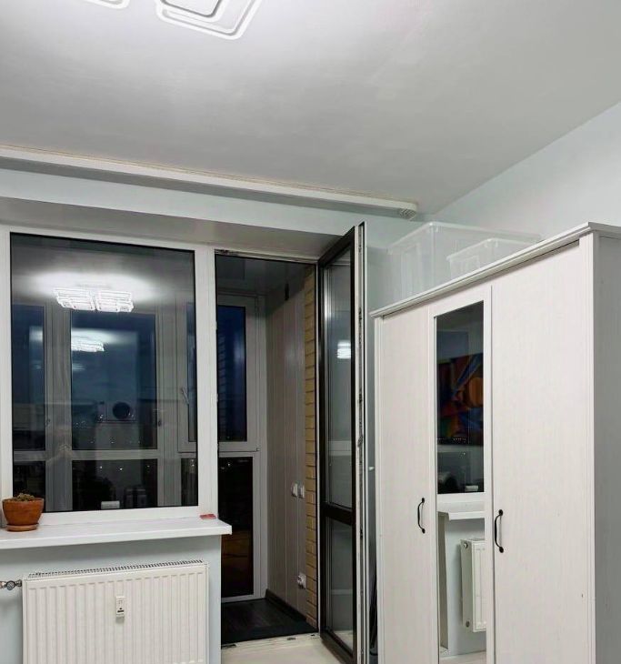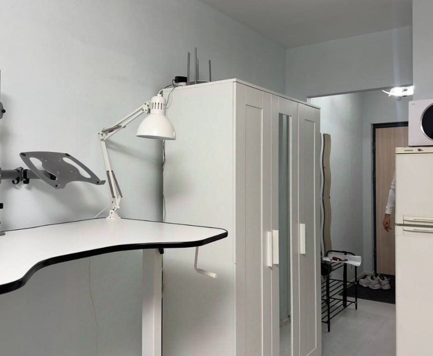 Студия: 27кв.м с утепленным балконом с окнами в пол, панорамный вид без домов. Светлая квартира обставлена мебелью Икеа