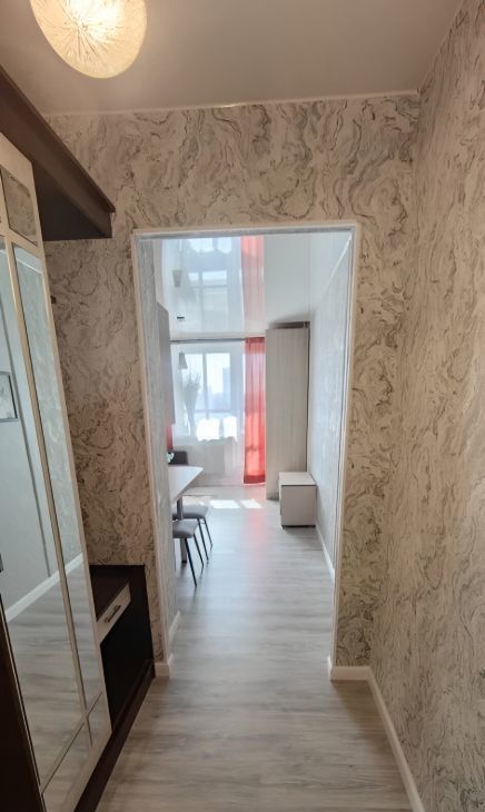 Квартира с дизайнерским свежим ремонтом, что создает атмосферу уюта и комфорта. Внутри есть вся необходимая мебель, на кухне чайник, микроволновка, холодильник, кофеварка,плита , и в комнате стол, письменный стол диван-кровать, шкаф. Из техники — холодильник и стиральная машина. Санузел совмещенный и оборудован душевой кабиной. Окна выходят как во двор, так и на улицу, а также есть небольшой балкон для вашего удобства.