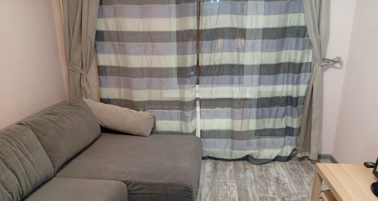 Уютная светлая тёплая студия для долгосрочной аренды. Свежий ремонт. Оборудованая и мебелированная - заезжай и живи. Всё есть для комфортного проживания: двуспальный диван, шкаф-купе Икея (ПАКС), электроплита (три комфорки) с духовкой, микроволновка, холодильник, стиральная машина, эл.чайник, комплект посуды (на 2 персоны) и спальных принадлежностей, телевизор и интернет.