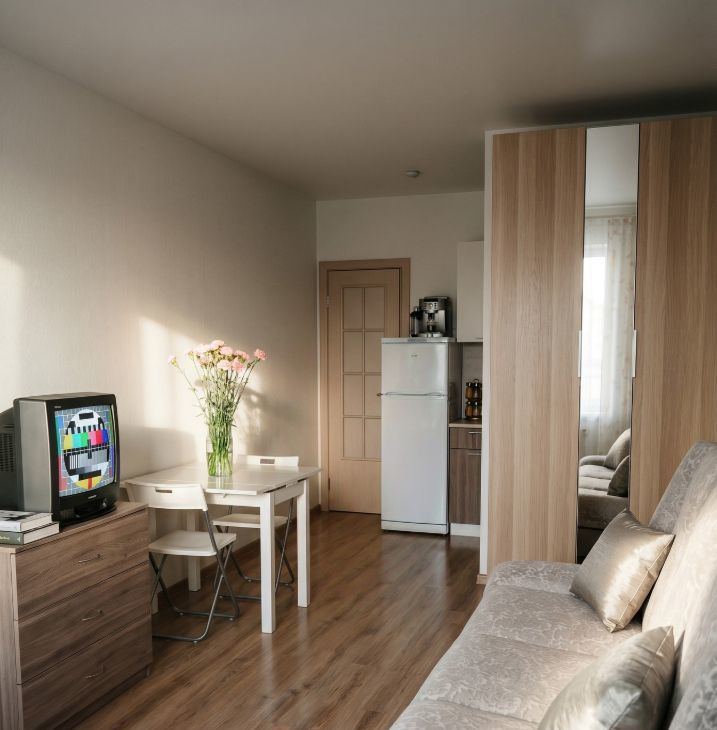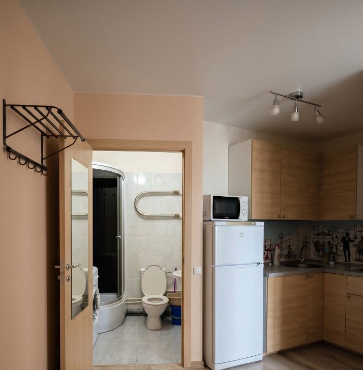 В студии есть вся необходимая мебель и техника: холодильник, телевизор и стиральная машина.Санузел совмещён, оборудован душевой кабиной. Из окон открывается вид во двор, который добавляет тишины и уюта. Интернет проведён, а это значит, вы всегда будете на связи.