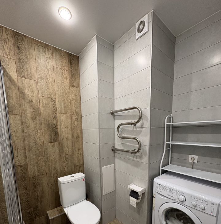 В квартире хороший ремонт, мебель, техника (холодильник, стиралка, плита, чайник, микроволновка), интернет проведён. Санузел совмещённый с душевой кабиной.