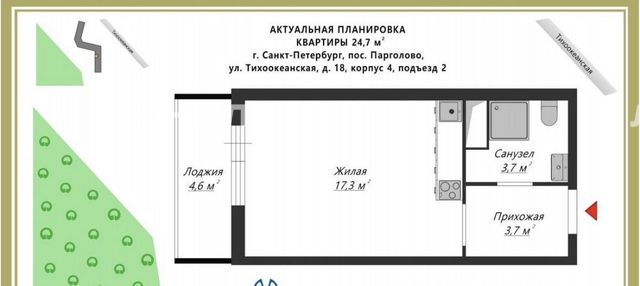 Студия Санкт-Петербург пос. Парголово, ул. Тихоокеанская, 18к4 (24.7 м²)