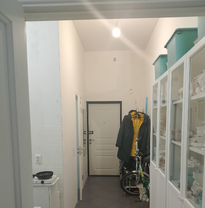 Из просторной гардеробной выделена зона кухни. Новые счётчики на воду.