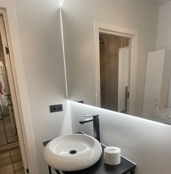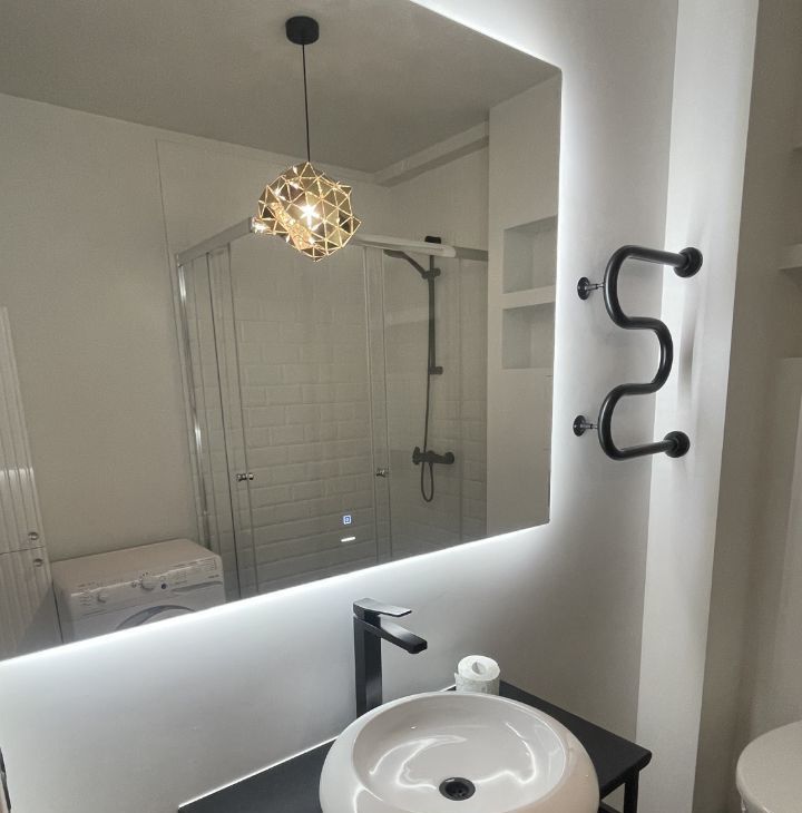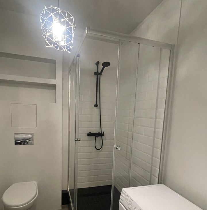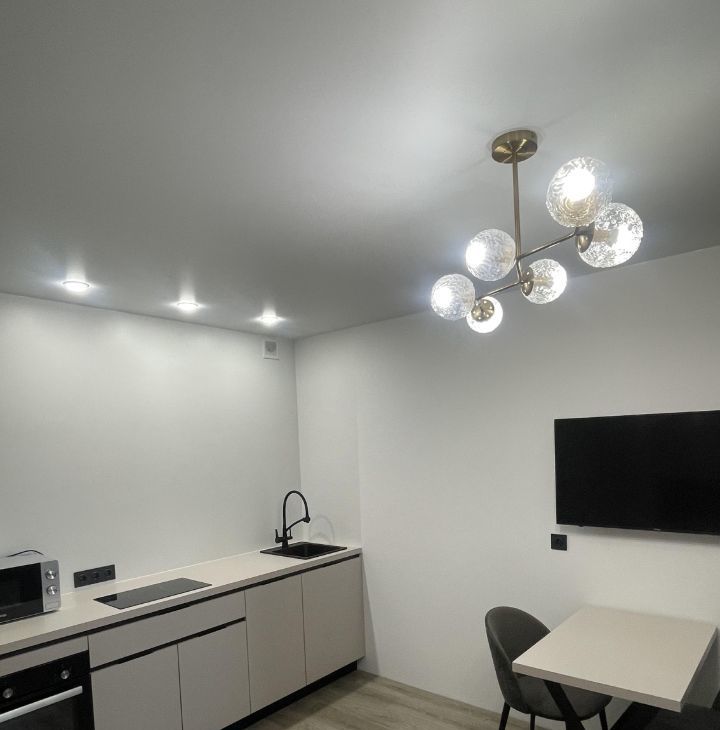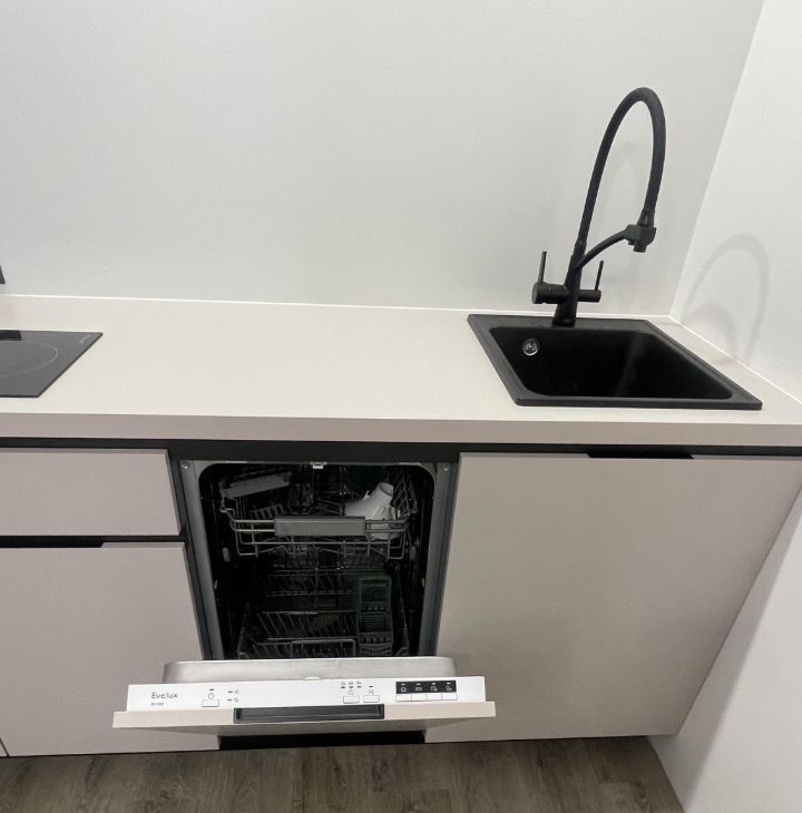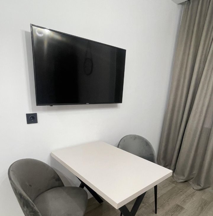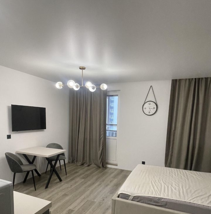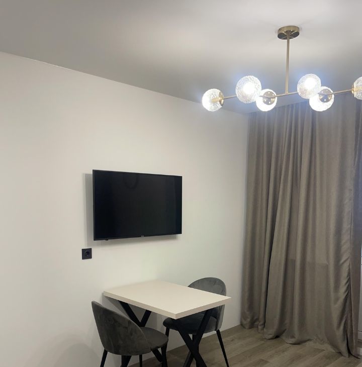 В квартире сделан дизайнерский ремонт, который подчёркивает её современный стиль и комфорт. В студии есть вся необходимая мебель как на кухне, так и в комнате, поэтому можно сразу заселяться и жить. Для вашего удобства установлена вся необходимая техника: холодильник, посудомоечная и стиральная машины, а также телевизор. В ванной комнате есть душевая кабина.