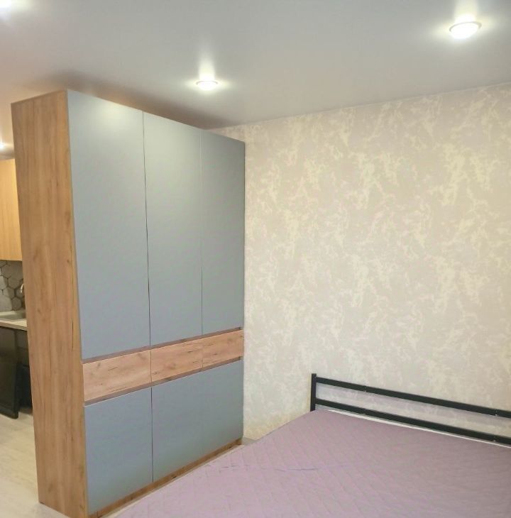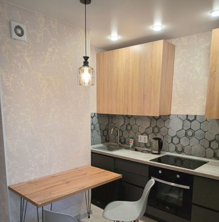 В квартире сделан качественный евроремонт. В комнате и на кухне есть вся необходимая мебель. Из техники — холодильник, телевизор и стиральная машина. Санузел совмещенный, с ванной. Из окон открывается вид на улицу, что создает светлую и просторную атмосферу. В квартире есть интернет, поэтому можно быть на связи в любое время.