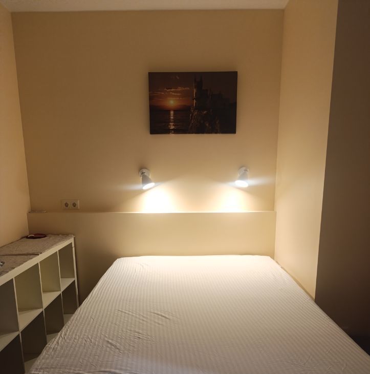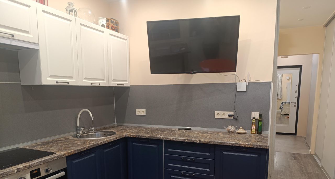 Комфортная студия (практически однокомнатная квартира) с выделенной спальней и гардеробной, полноценной кухней для одного, пары. Квартира оборудована всей бытовой техникой: трехкомфорочная варочная поверхность, духовой шкаф, посудомоечная машина, микроволновка, холодильник, стиральная машина, встроенный фильтр для воды. Также есть большой телевизор, многоуровневое освещение, интернет и телевидение (провайдер Енева) в санузле теплые полы. Уютная лоджия.