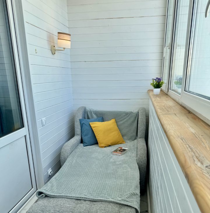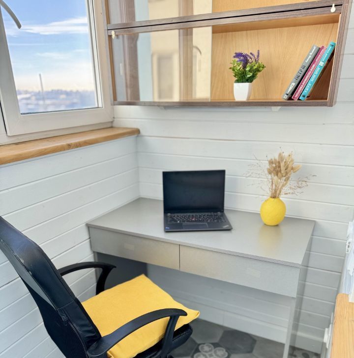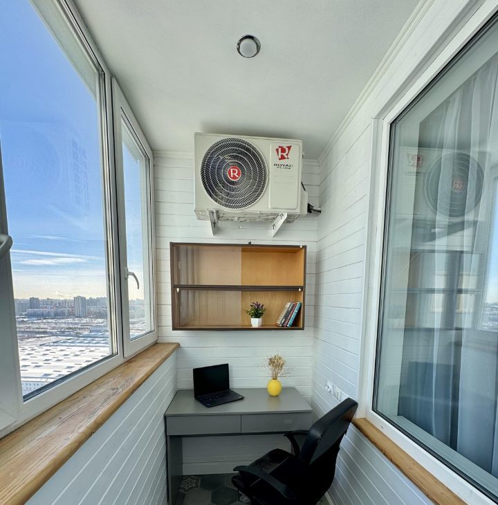 Утепленный балкон с двухкамерными стеклопакетами и теплым полом (отдельная уютная комната-кабинет) - наслаждайтесь уединением даже в холодные зимние дни.