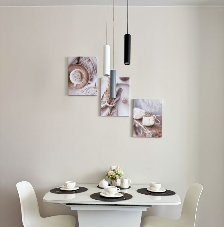Отдельные обеденная зона и зона отдыха делают пространство более функциональным, комфортным и эстетичным.