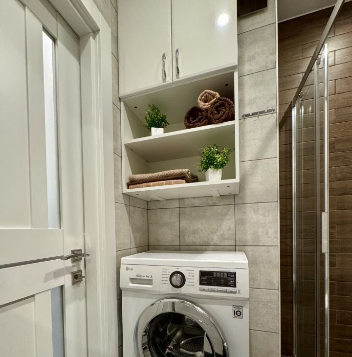 Современная техника: телевизор (smart TV), холодильник, варочная панель, микроволновая печь, посудомоечная и стиральная машины, бойлер, кондиционер.