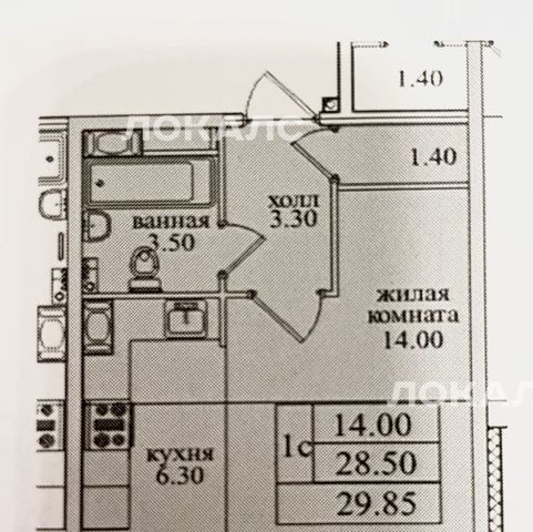 Общая площадь квартиры: 28,5 кв м + лоджия 2,7 кв м