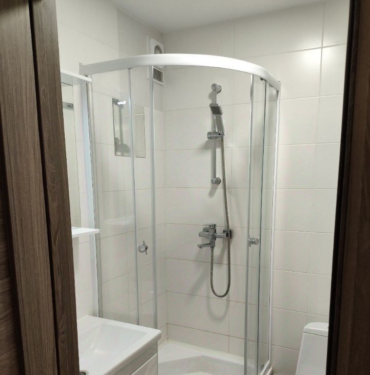 В квартире сделан качественный евроремонт. Пространство обставлено необходимой мебелью как в комнате, так и на кухне. Из техники есть холодильник и стиральная машина, телевизор,поэтому можно сразу заехать и жить без лишних хлопот. Санузел совмещённый, оборудован душевой кабиной.