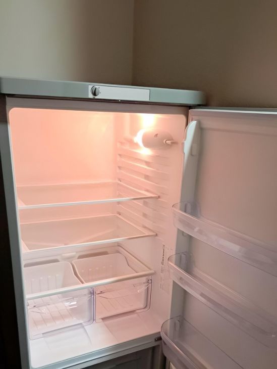 Новая мебель: комод, холодильник, диван-кровать баден-баден (механизм трансформации: еврокнижка), обеденный стол, удобные стулья, жалюзи, полка, индукционная плита, стиральная машинка - б/у.