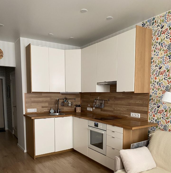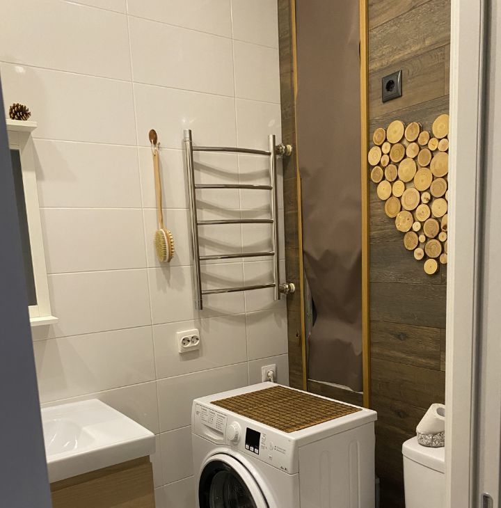 Новому владельцу останется: удобный диван с системой аккордеон от Диван ру, тумба под тв, кухня Икея со встроенной техникой (духовой шкаф, посудомоечная машина, холодильник LG), стол и стулья, гардеробная система Икея с тумбой и зеркалом, в ванной стиральная машинка Hotpoint Ariston.