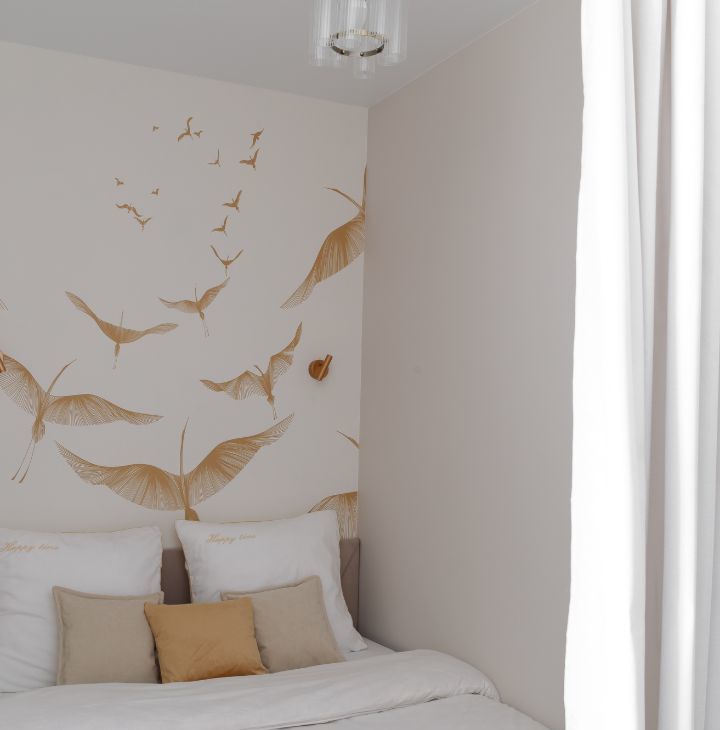 Интерьер выполнен в современном стиле с акцентом на комфорт и функциональность: грамотное зонирование отделяет спальную зону от гостиной, реализованы несколько сценариев освещения для создания атмосферы под любое настроение.