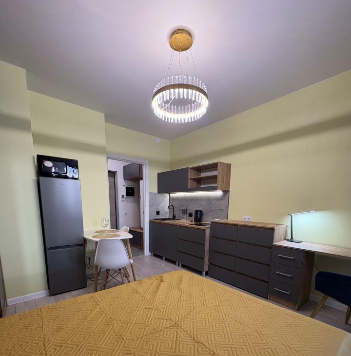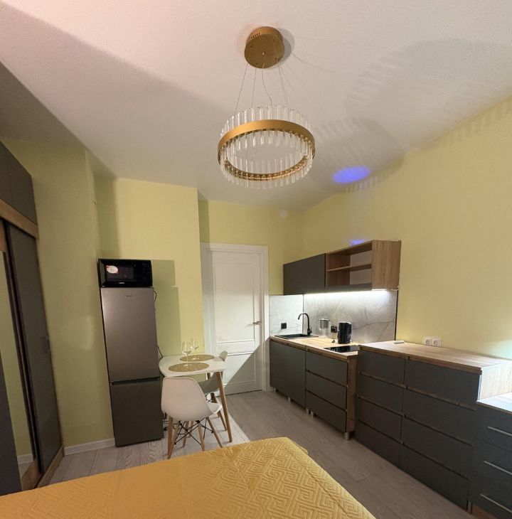Сдaётся стильная,функциональная cтудия с дизайнерским ремонтом. Новый монолитный дом с отличной транспортной доступностью. Остановка трамвая в 3-х минутах пешком, до м.Купчино 10 минут. Сдaча впeрвые, вся мебель и техника новые.