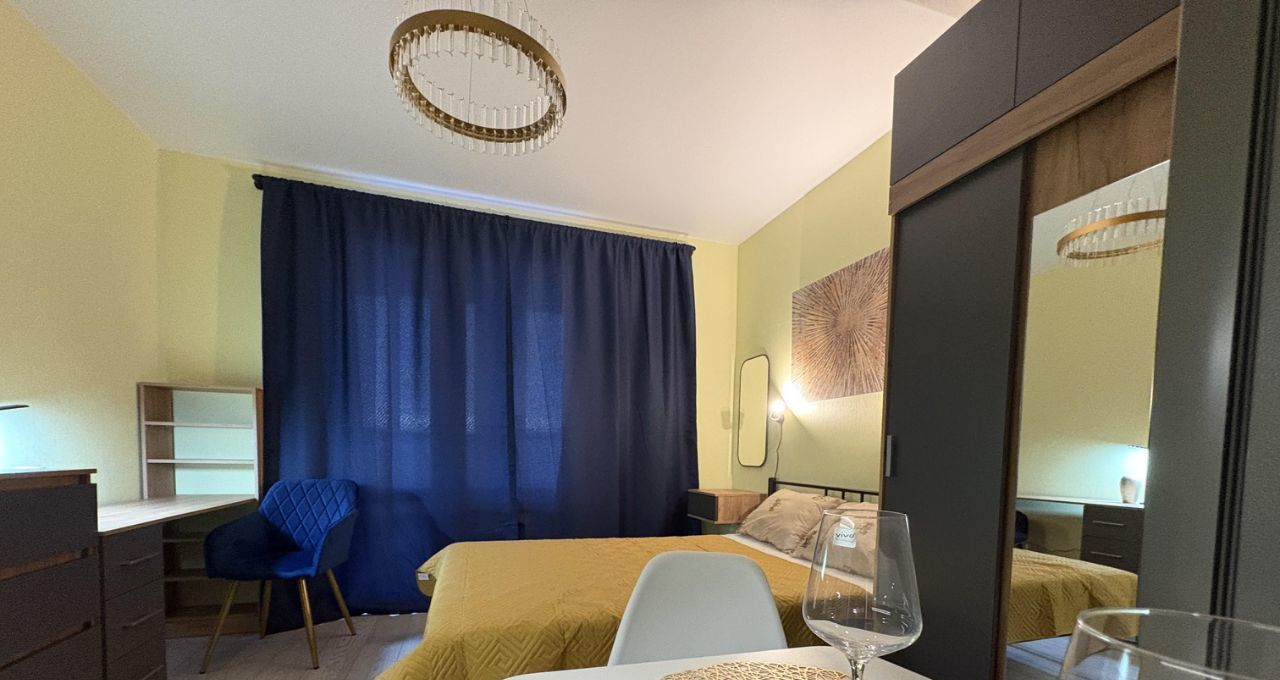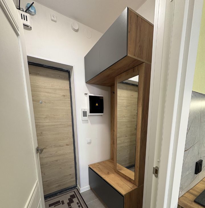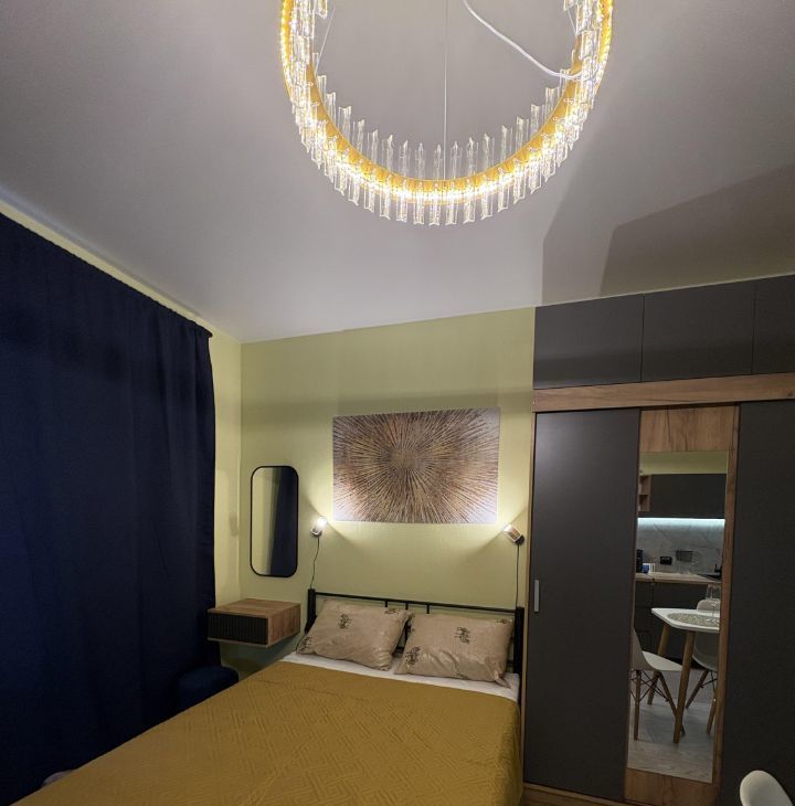 В квартире всё максимально продумано для комфортного проживания одного или двух человек. Много места для хранения, но в то же время квартира не заставлена. Есть рабочая и обеденная зоны, туалетный столик, двуспальная кровать Аскона с ортопедическим матрасом. Продумана комфортная система освещения. Проведен высокоскоростной интернет.