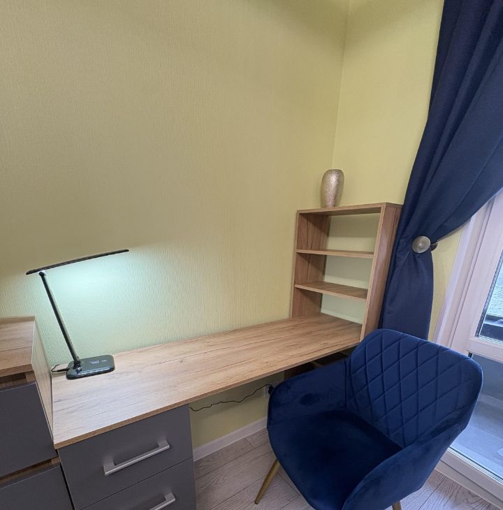 Квартира находится на 10-м этаже, имеет отличный вид из окна. Тихо и светло.