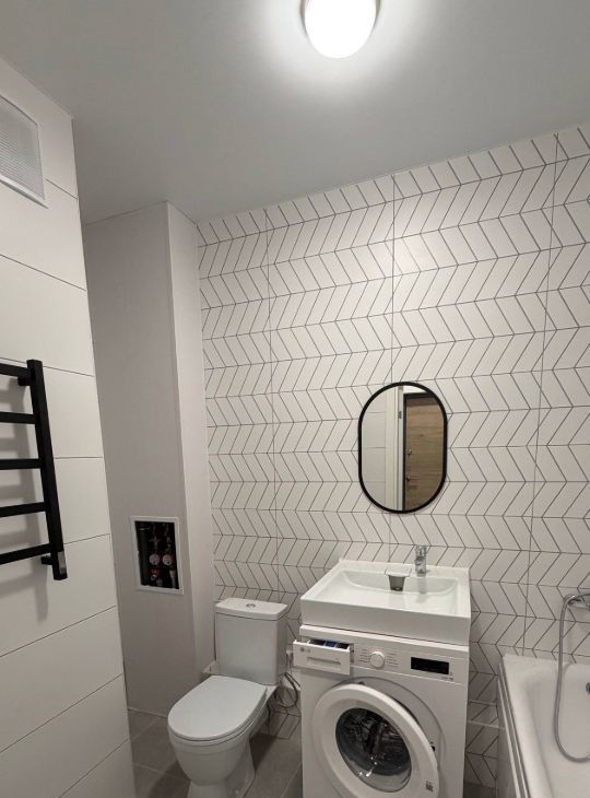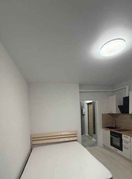 Студия с новым ремонтом, современной мебелью и бытовой техникой.