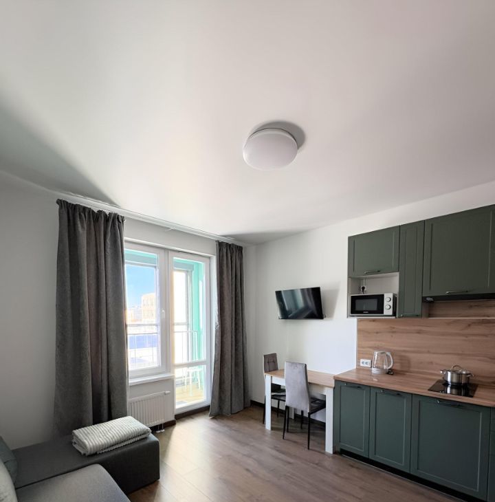 Сдается студия в новом монолитном доме на длительный срок, от собственника (без комиссии), залог можно разбить на 2 части. Ранее в квартире никто не проживал, вся новая мебель (кухня, прихожая, раскладной диван, стол/стулья, большой, очень вместительный шкаф) и техника (холодильник, тв, микроволновка, стиральная машинка). Выход из подъезда на обе стороны дома, рядом Магнит/Дикси, аптека, пекарня, ПВЗ итд. В шаговой доступности остановка автобуса, нового скоростного трамвая до ст. м. Купчино.